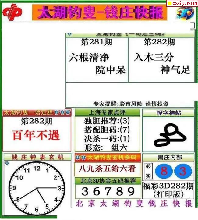钱庄快报2025282期3d图谜