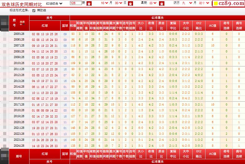 126期双色球历史同期对比图