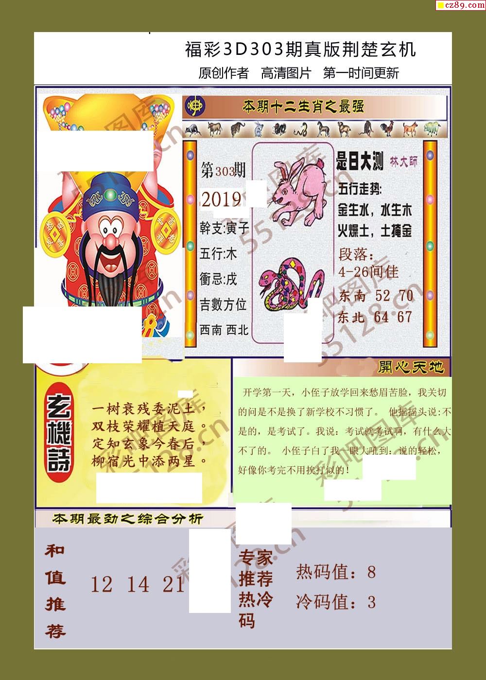 > 25福彩3d303期真版荆楚玄机彩报