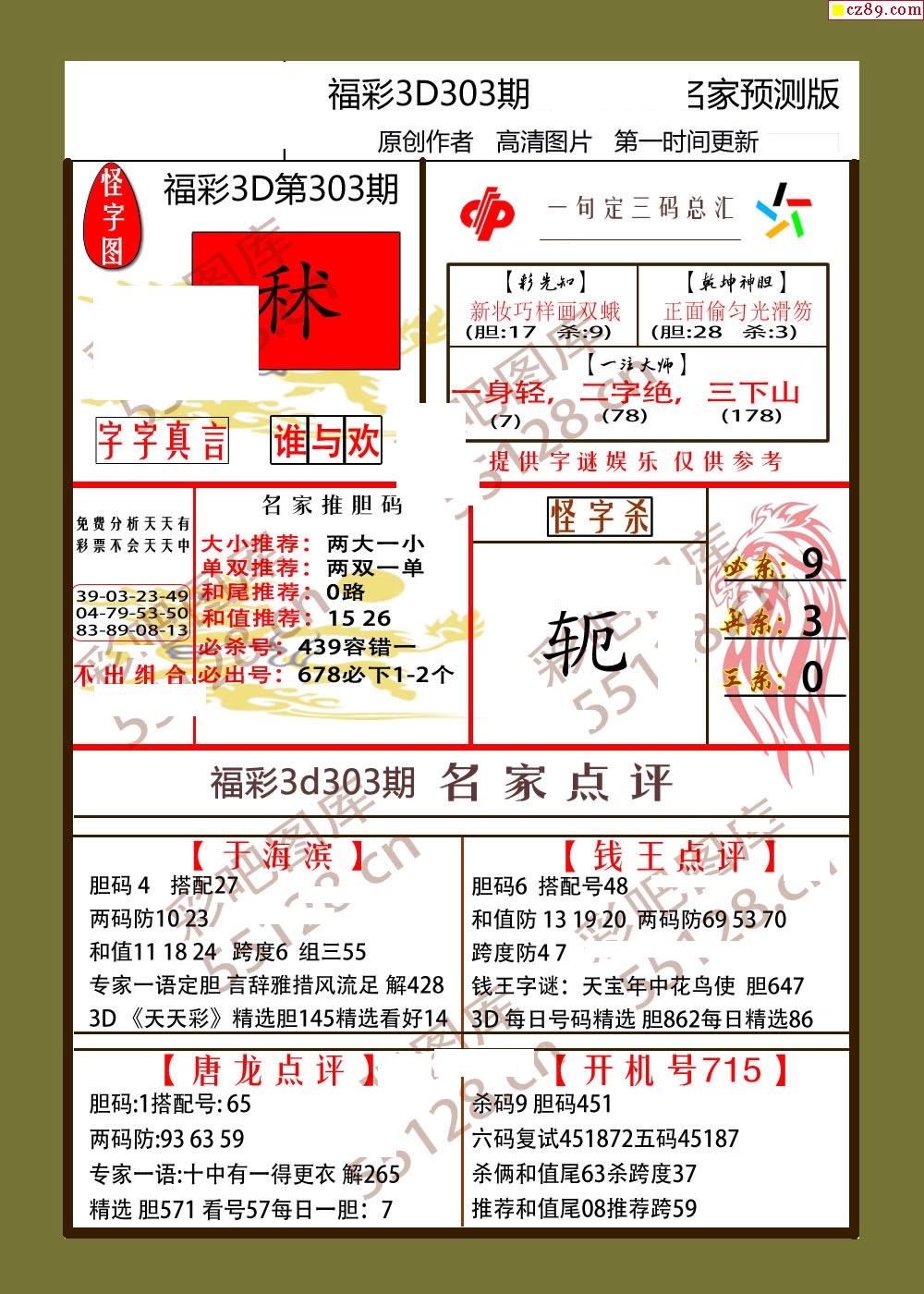25年303期福彩3d春风细雨画报